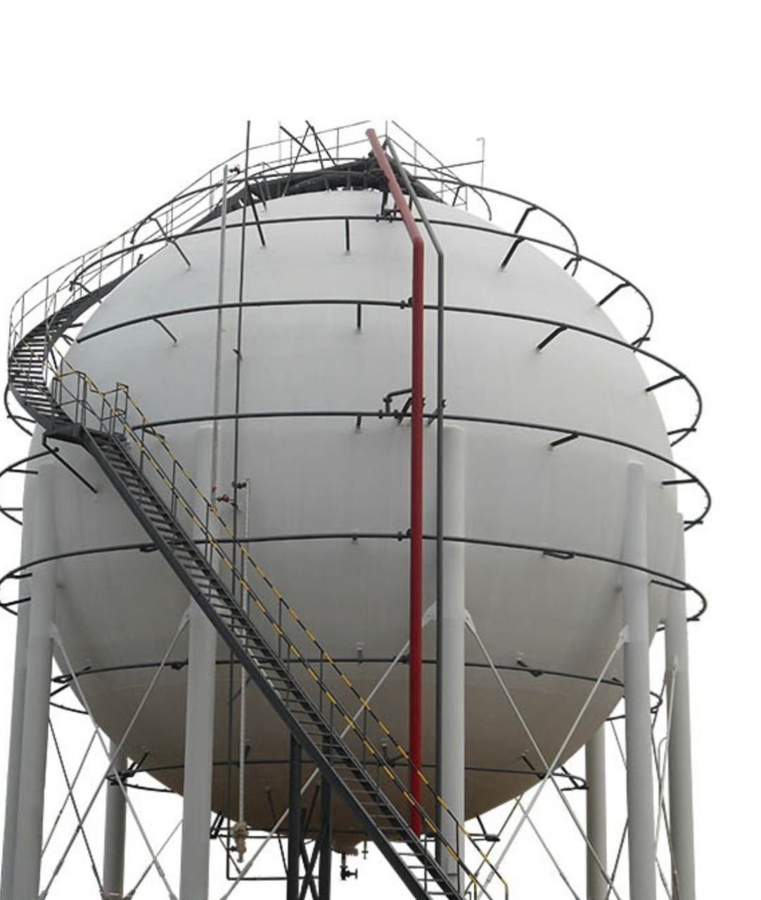 Spherical storage tanks have fewer separate parts, so they have fewer seams or welded connection points which make them stronger. The spherical shape distributes the stresses created by the high pressure evenly which also improves the strength of the tank.